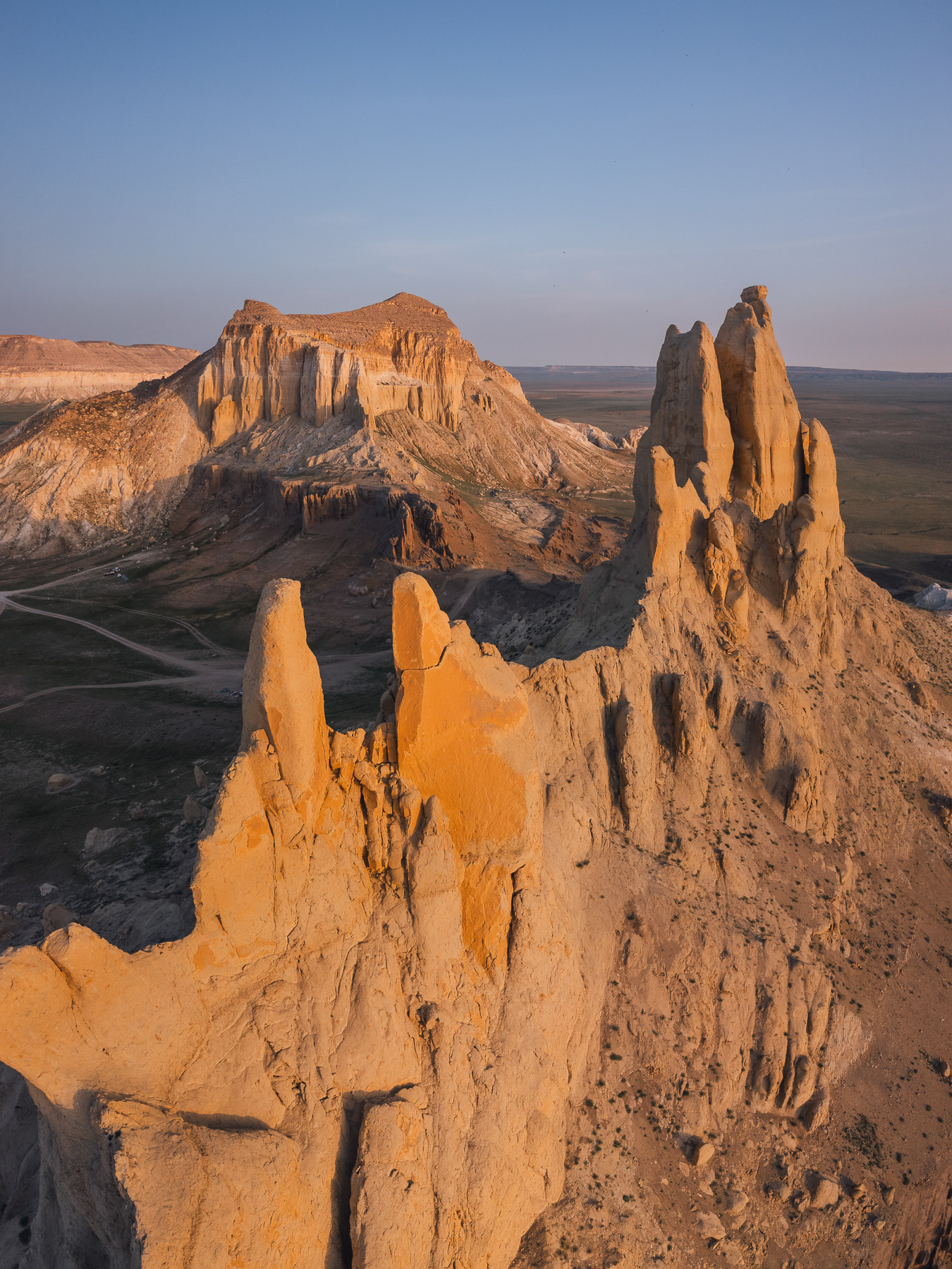 Wschód słońca nad Tuzbayr Salt Flat Bottom, a następnie przejazd do Sherkala Mount, zwanej „Lwią Górą”. Po południu odwiedzamy bajkowe Airakty Castles, gdzie skalne wieże i zamkowe kształty o zachodzie słońca nabierają złotych barw. Zakwaterowanie w namiotach, kolacja i nocleg