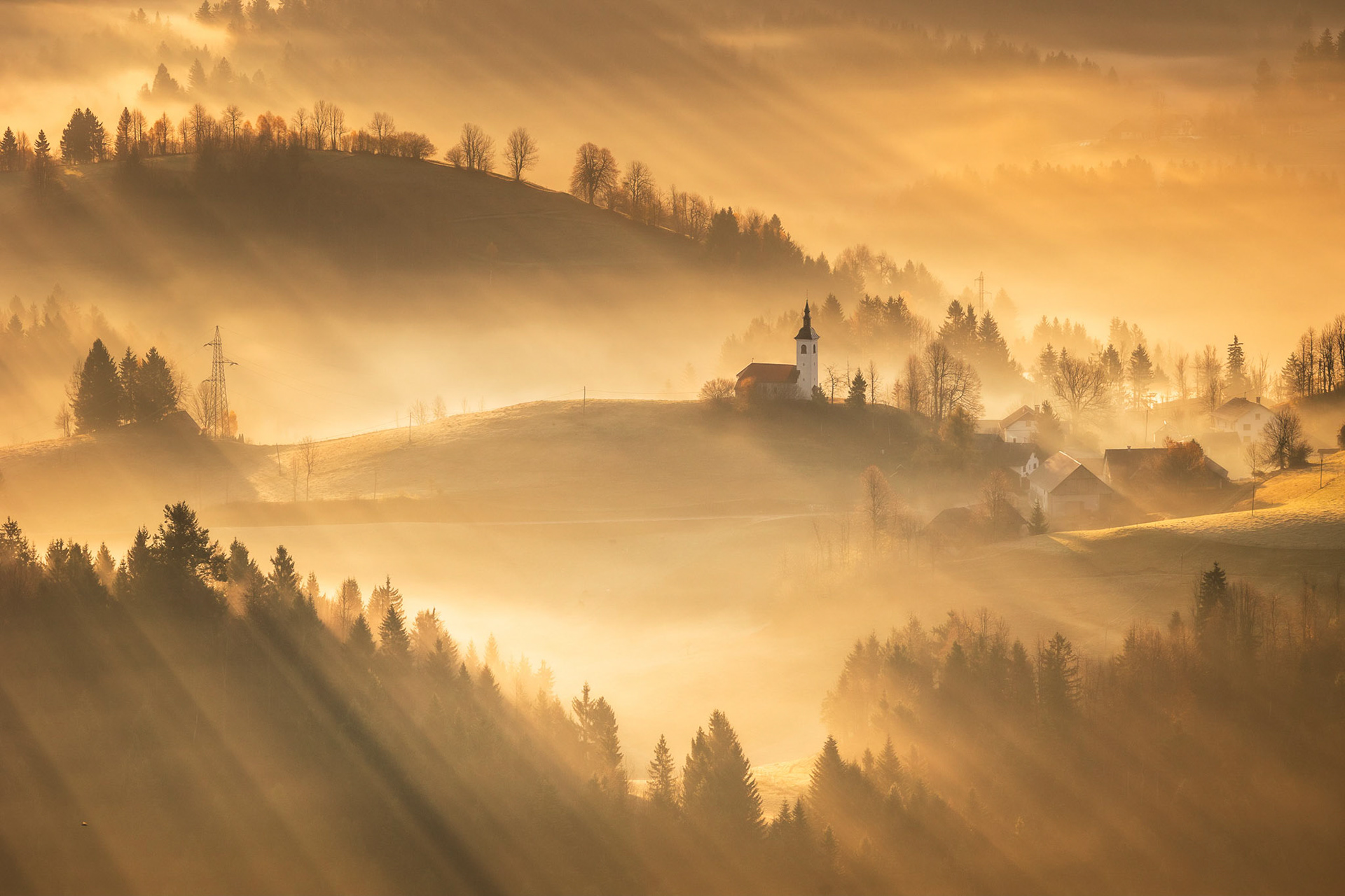Dzień rozpoczynamy wschodem w okolicach kościoła w Jamniku. Następnie przejazd w kierunku doliny Rzeki Soczy. Zachód słońca w okolicach miasta Kamnik.